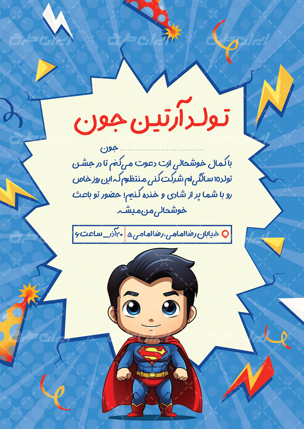 طرح جشن تولد و متن دعوت جشن تولد می باشد که توسط طراحان ایران طرح در نرم افزار فتوشاپ طراحی شده است.