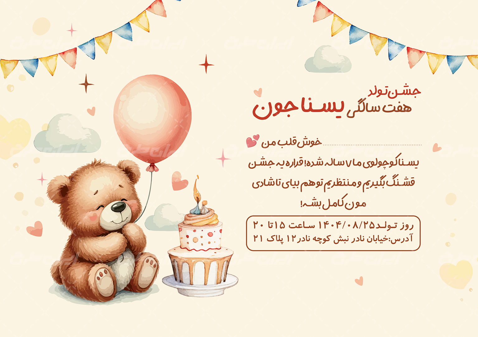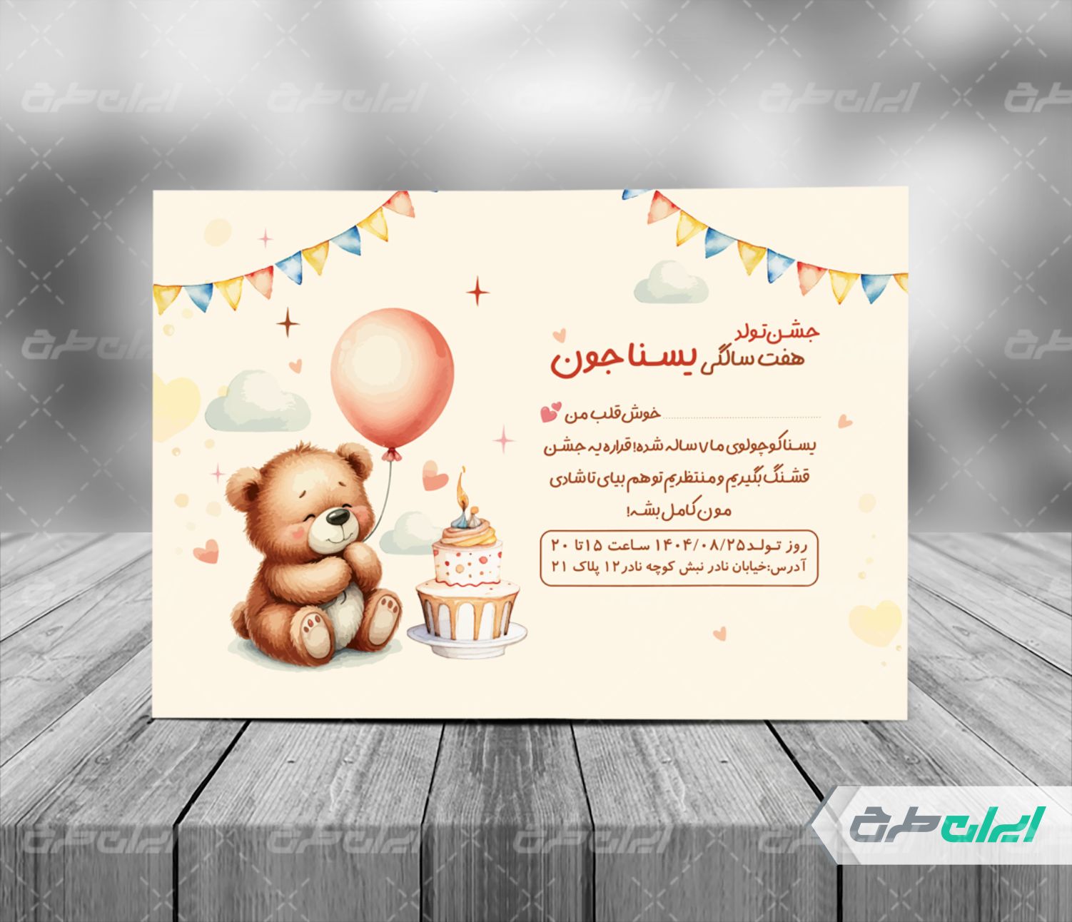 طرح جشن تولد و متن دعوت جشن تولد می باشد که توسط طراحان ایران طرح در نرم افزار فتوشاپ طراحی شده است.