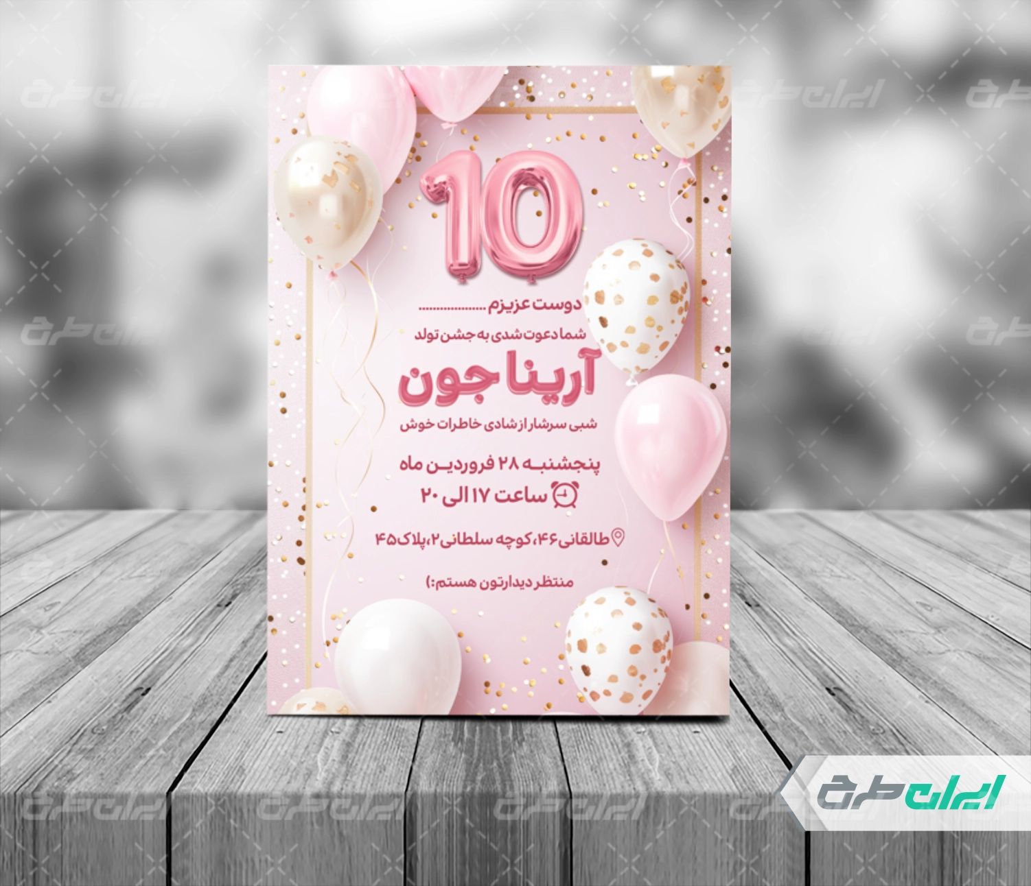 طرح جشن تولد و متن دعوت جشن تولد می باشد که توسط طراحان ایران طرح در نرم افزار فتوشاپ طراحی شده است.