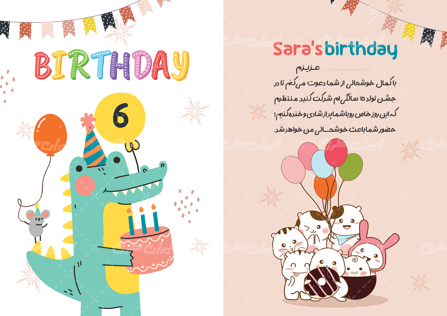 طرح کارت دعوت جشن تولد شامل:
