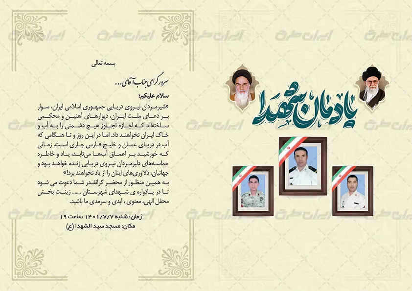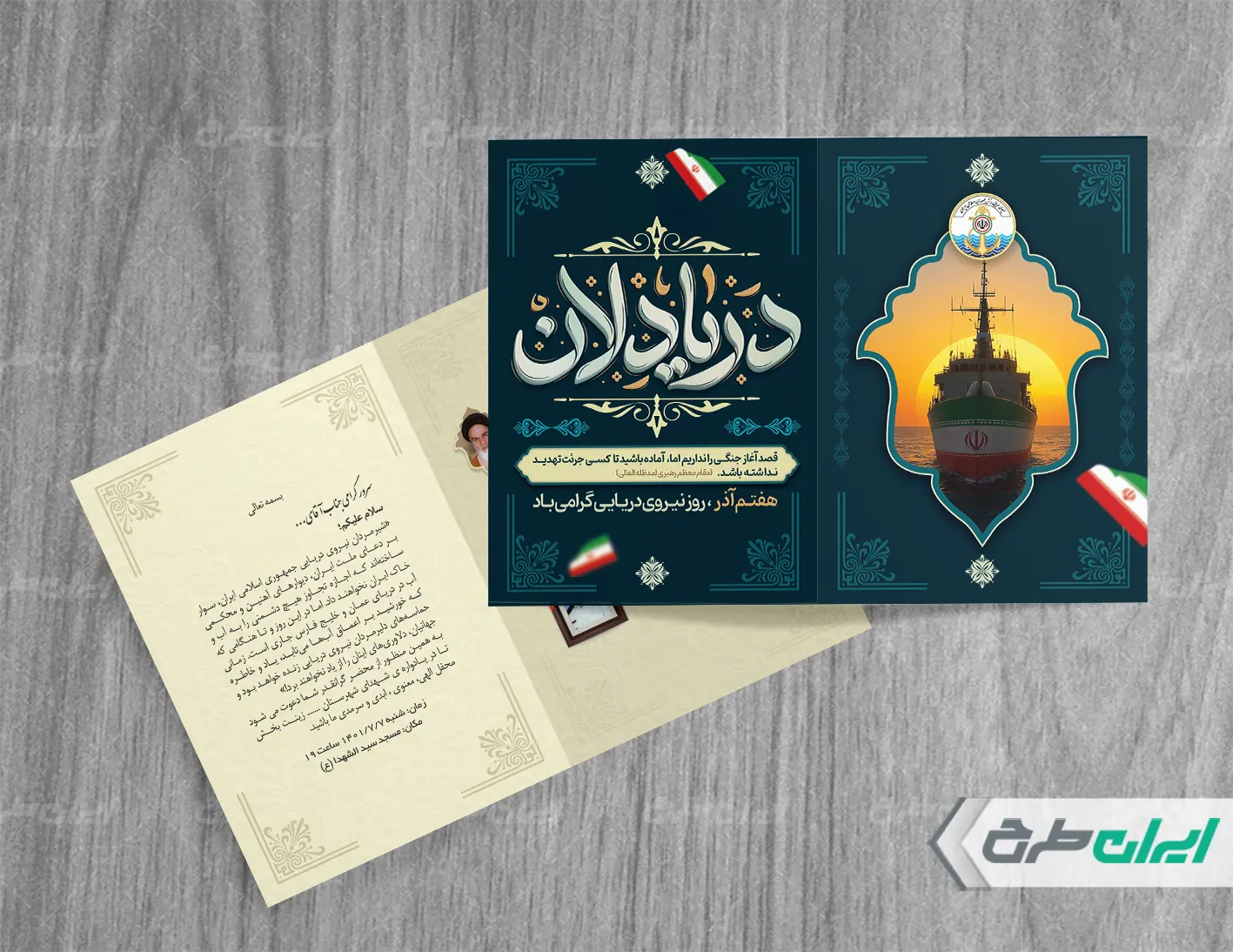 مشخصات فنی طرح لایه باز کارت دعوت مراسم روز نیروی دریایی