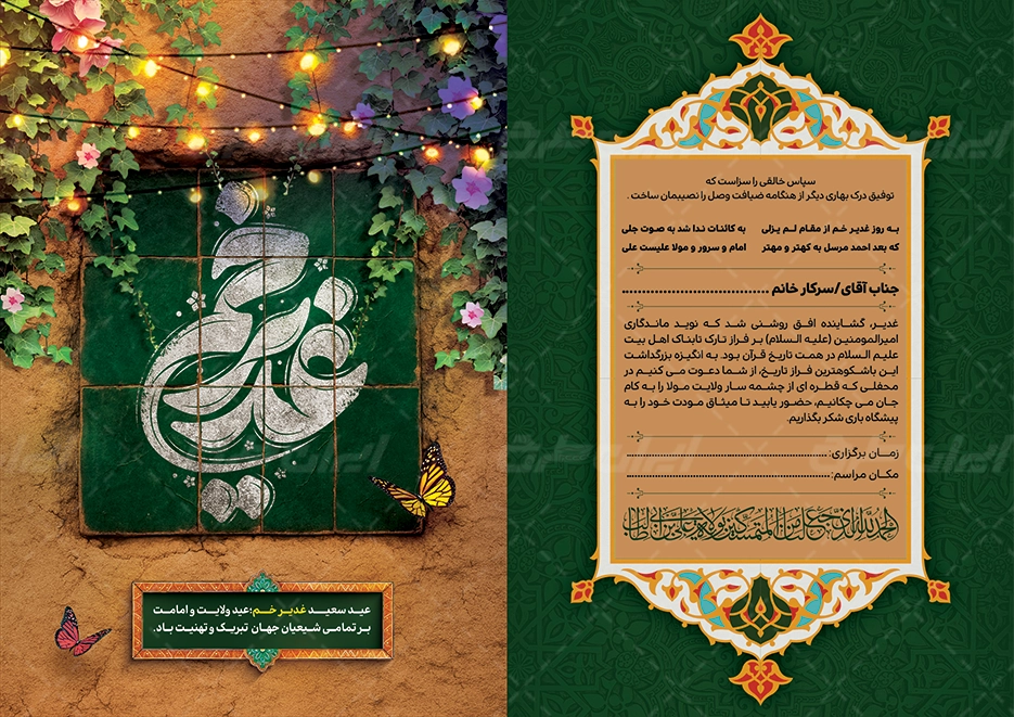 کارت پستال , طرح لایه باز کارت دعوت عید غدیر , طرح کارت پستال عید غدیر خم , عید غدیر , کارت پستال مراسم عید غدیر , کارت دعوت , طرح کارت دعوت عید غدیر , کارت پستال عید غدیر , تایپوگرافی غدیر خم ,