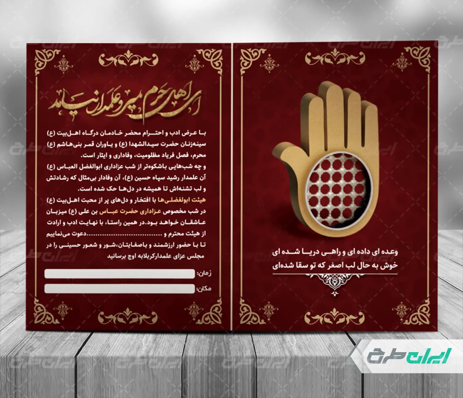 متن مراسم عزاداری محرم و متن دعوت نامه می باشد که توسط طراحان ایران طرح در نرم افزار فتوشاپ طراحی شده است.