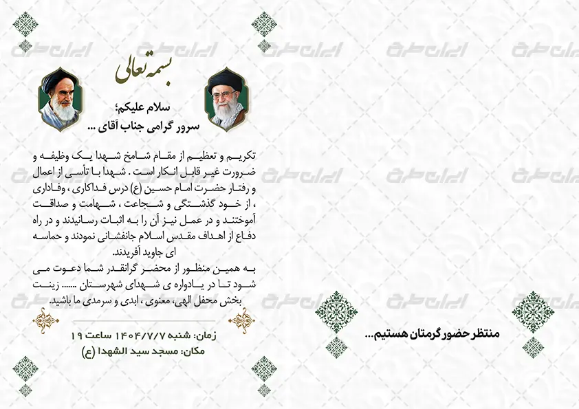 مشخصات فنی کارت دعوت مراسم بزرگداشت شهدا