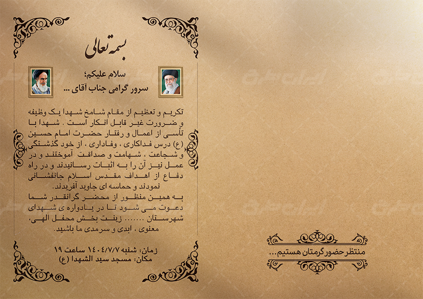 مشخصات فنی کارت دعوت مراسم بزرگداشت شهدا