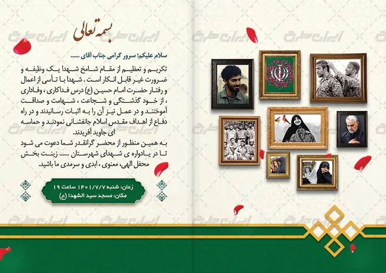 مشخصات فنی کارت دعوت مراسم بزرگداشت شهدا