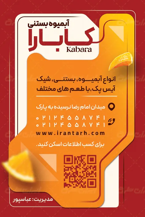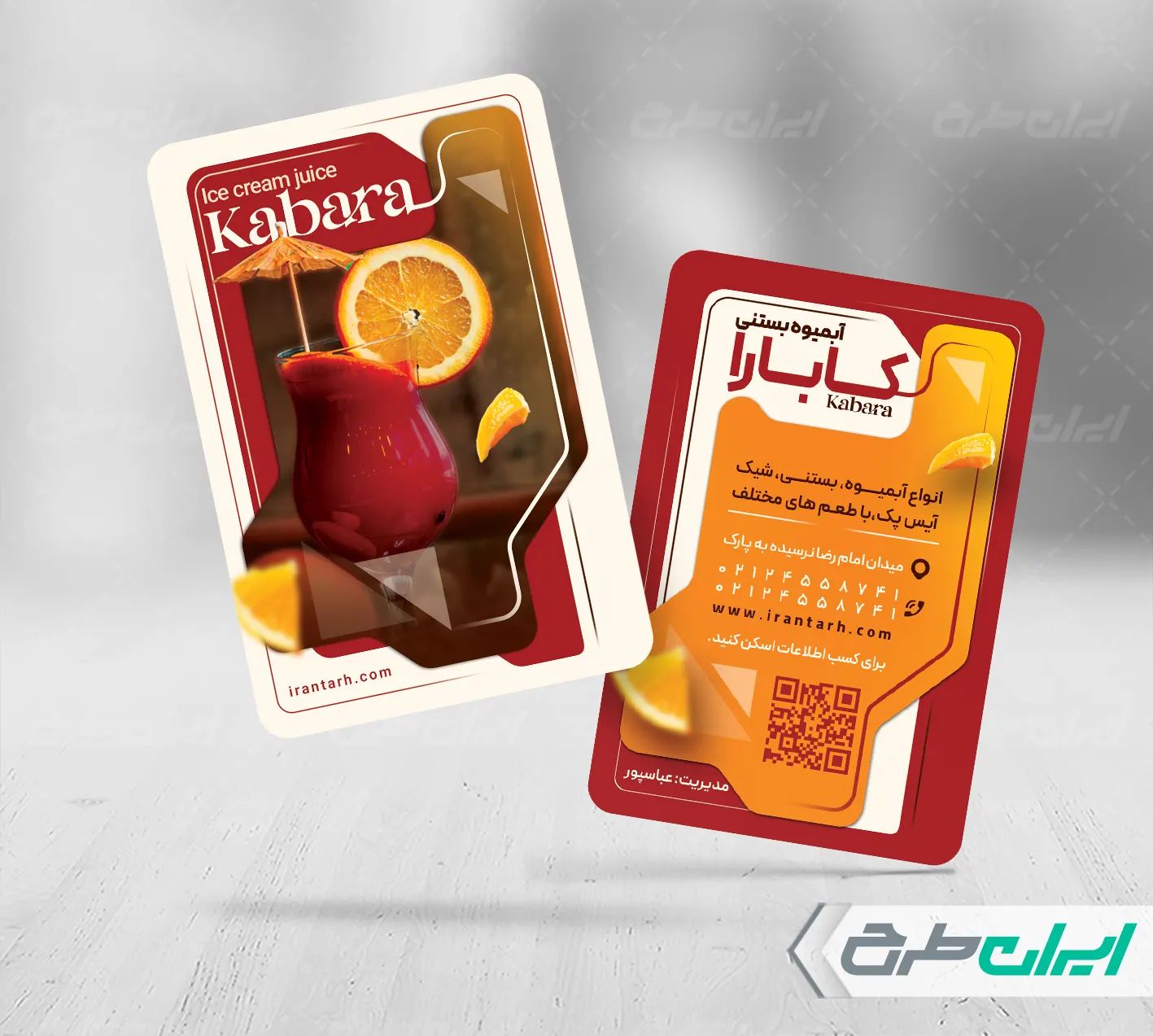 مشخصات فنی طرح کارت ویزیت لایه باز آبمیوه فروشی