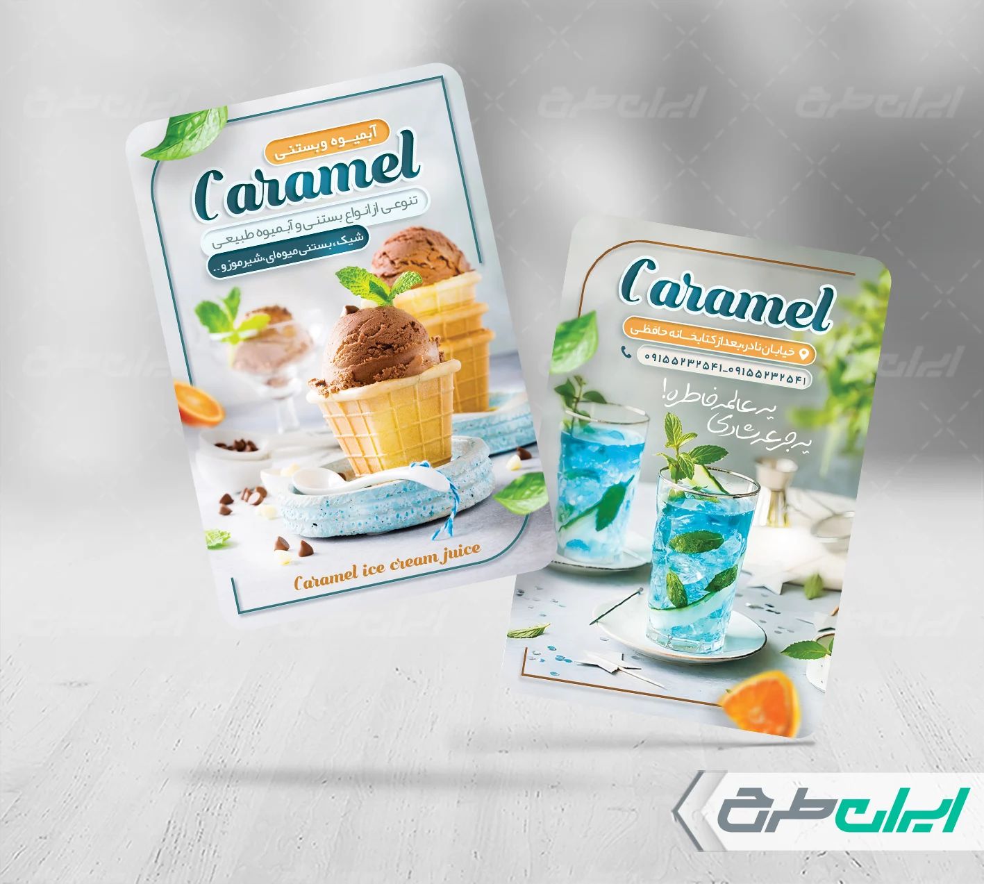 طرح کارت ویزیت آبمیوه و بستنی فروشی