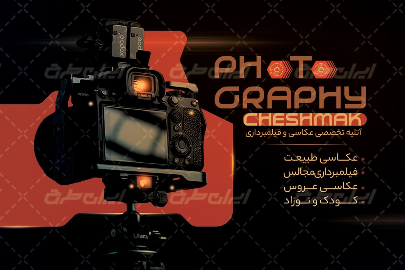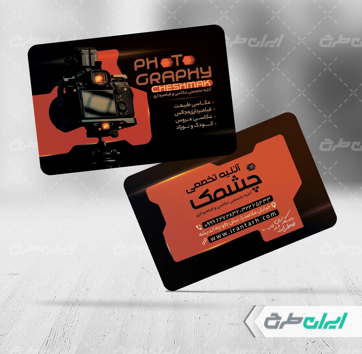 طرح کارت ویزیت فروشگاه آتلیه عکاسی و فیلمبرداری شامل: