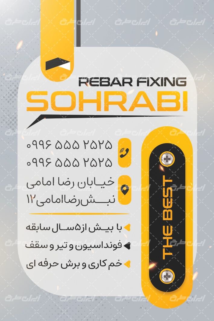 کارت ویزیت آرماتور بندی ،جهت تبلیغات این دسته از فروشگاه ها توسط تیم ایران طرح طراحی شده است.