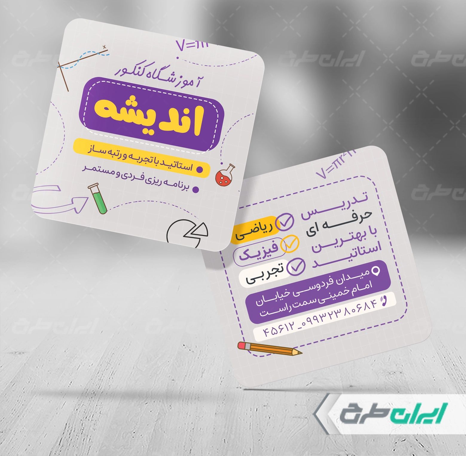 کارت ویزیت آموزشگاه کنکور ،جهت تبلیغات این دسته از آموزشگاه ها توسط تیم ایران طرح طراحی شده است.
