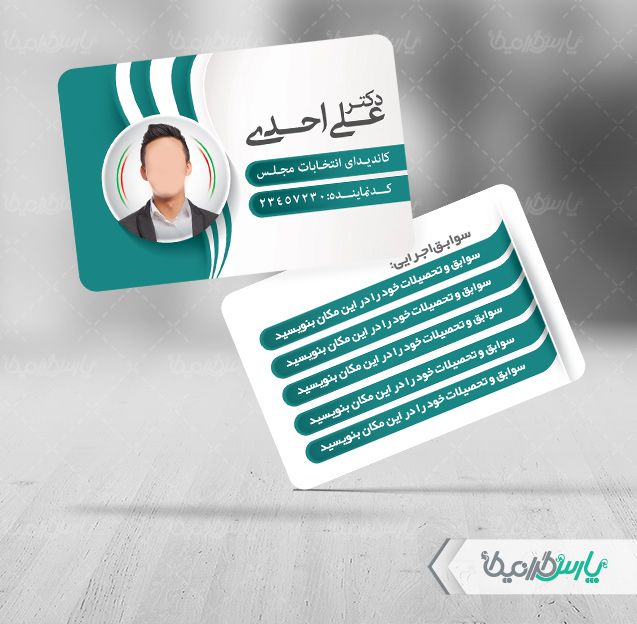 کارت ویزیت لایه باز نامزد انتخابات مجلس و شورای شهر و نماینده مجلس و نامزد ریاست جمهوری