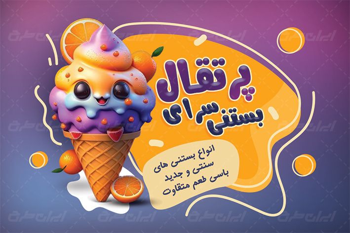 انتقال حس شیرینی و خوشمزگی: طرح با زمینه بنفش و عکس بستنی، به مشتریان احساس شیرینی و خوشمزگی را القا میکند. این حس، ارتباط مشتریان را با بستنیهای شما تقویت میکند و آنها را به خرید و مصرف محصولات شما ترغیب میکند.