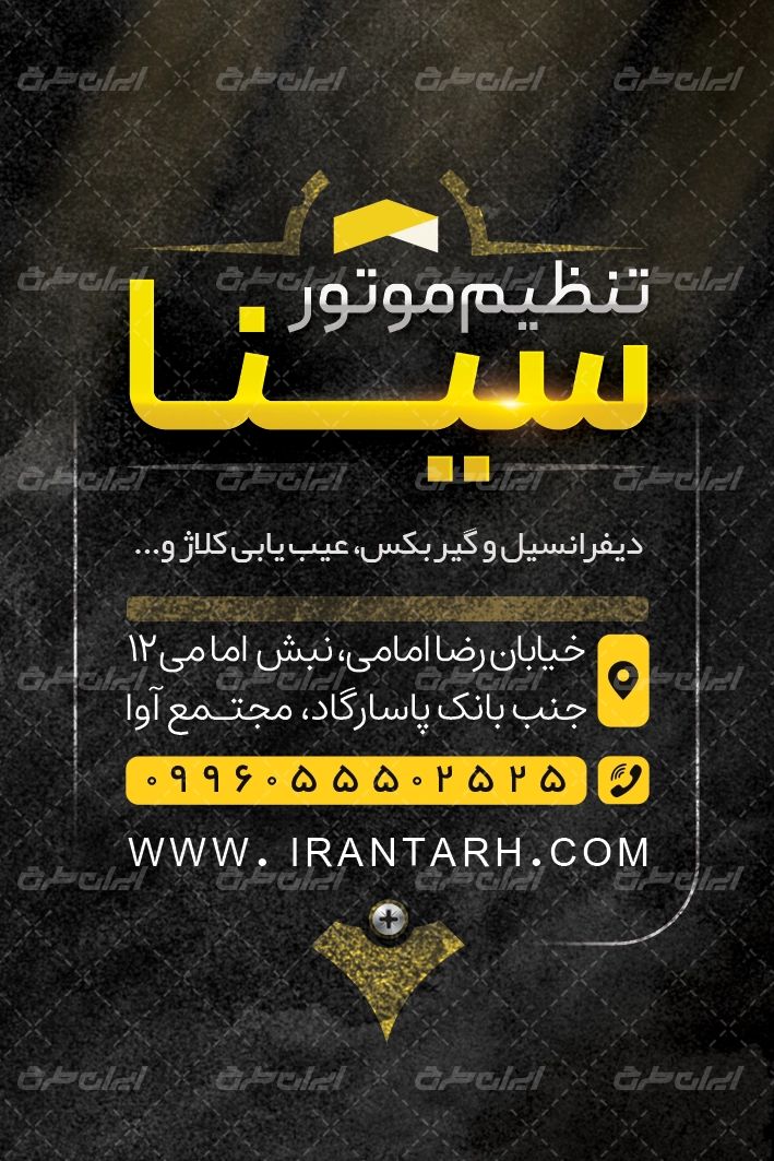 کارت ویزیت لایه باز تنظیم موتور توسط تیم ایران طرح جهت تبلیغات و بازاریابی این فروشگاه ها طراحی و در دسترس کاربران سایت قرار گرفته است.