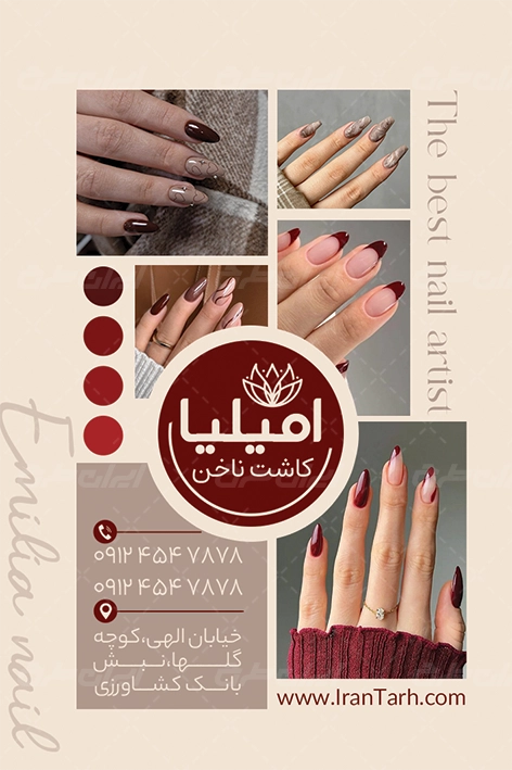 طرح کارت ویزیت خدمات کاشت ناخن شامل: