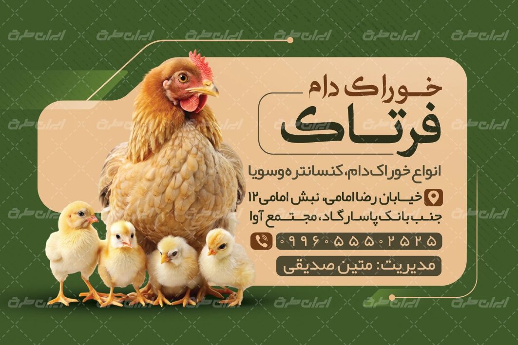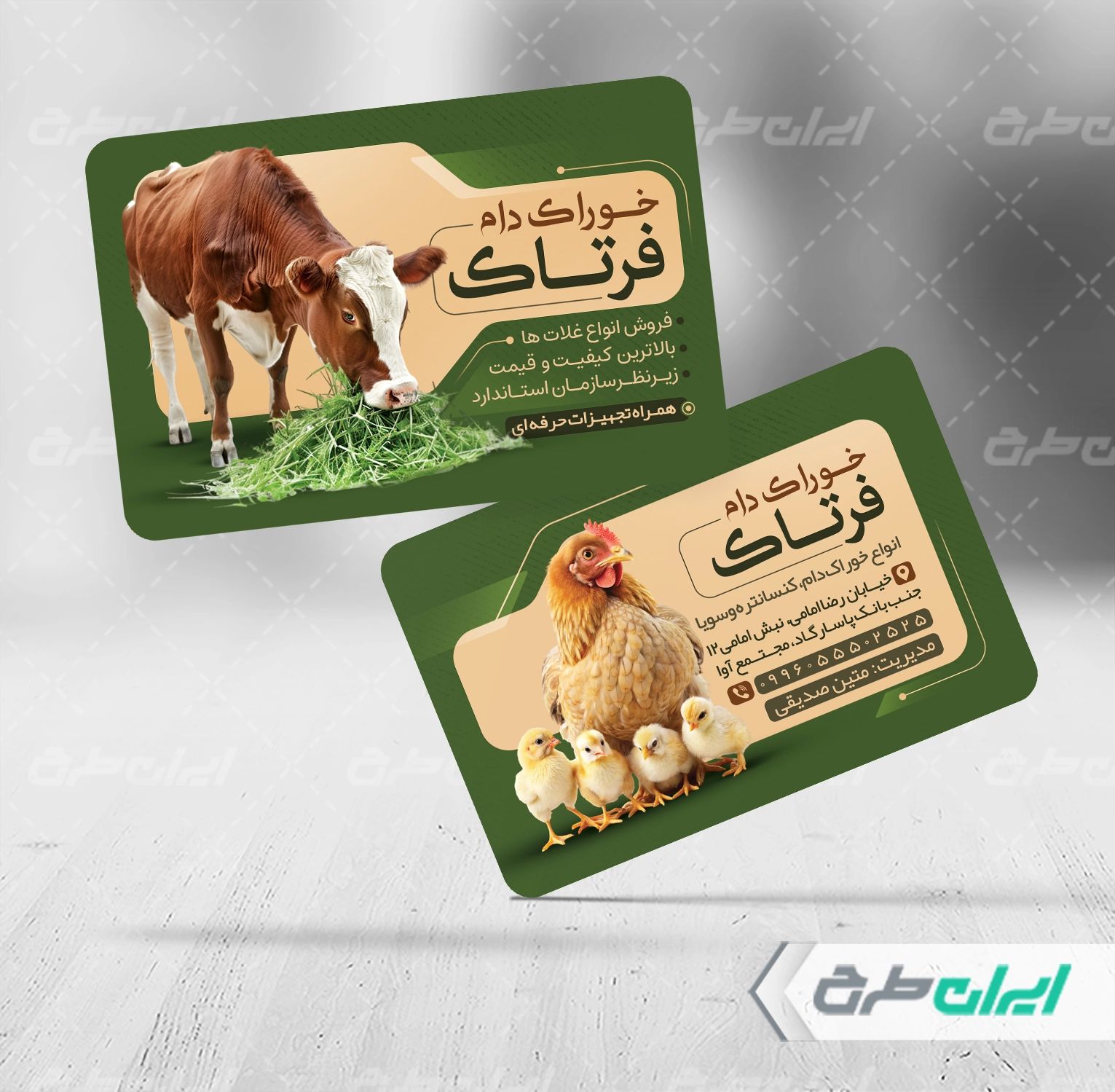 ایران طرح کارت ویزیت خوراک دام و طیور را جهت تبلیغات و بازاریابی این فروشگاه ها، طراحی و در دسترس کاربران سایت قرار داده است.
