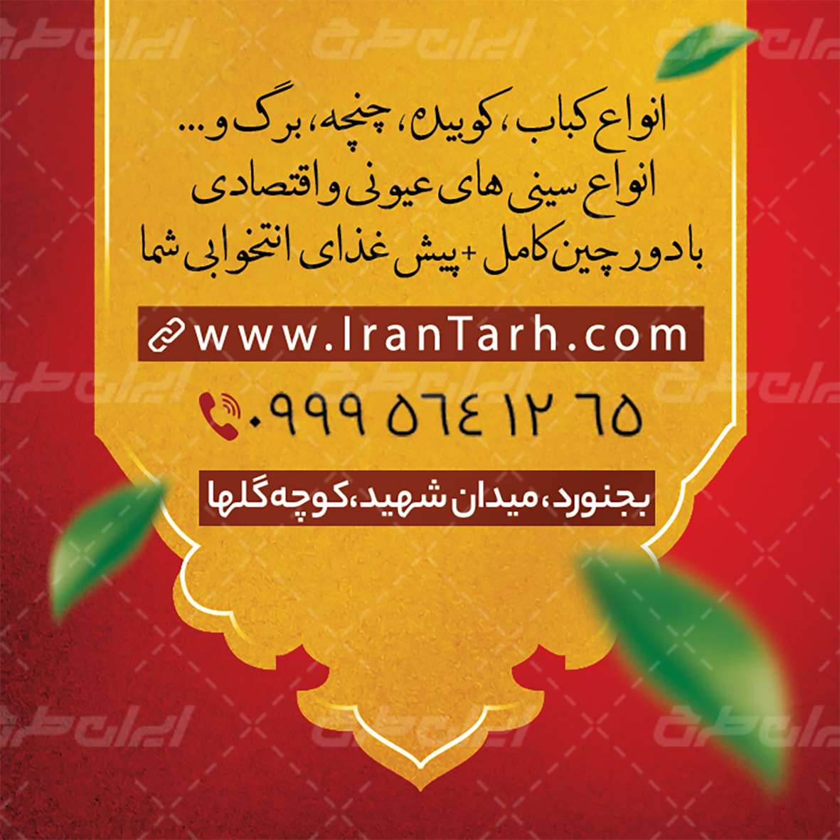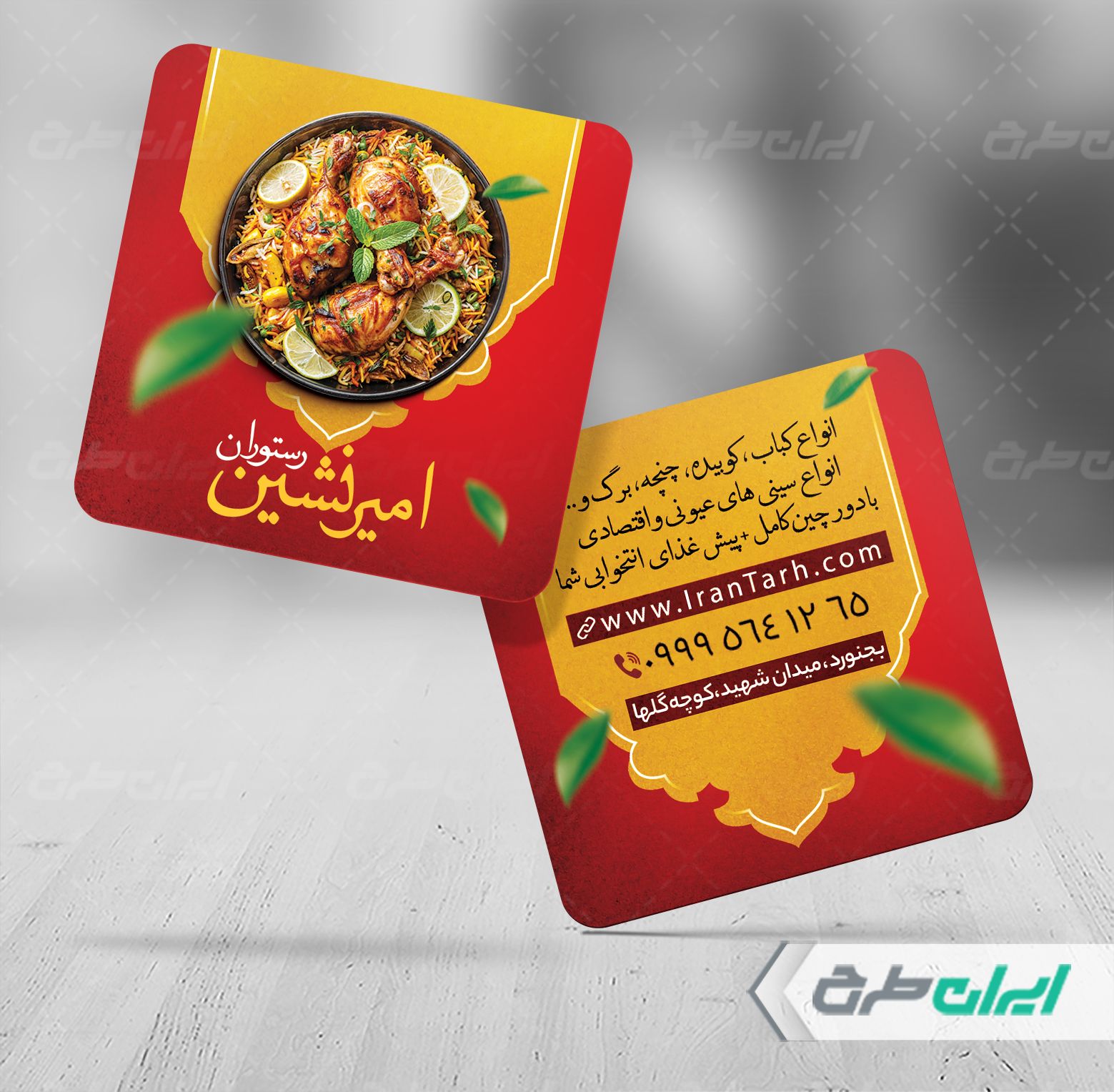 طرح کارت ویزیت رستوران، توسط تیم ایران طرح برای بازاریابی و تبلیغات این فروشگاه طراحی شده است.