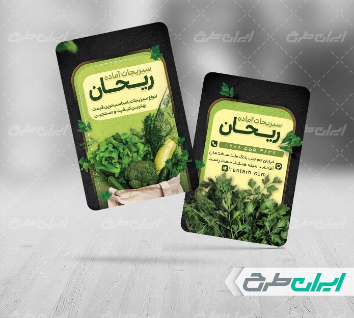 طرح کارت ویزیت فروشگاه سبزیجات، جهت بازاریابی و تبلیغات این دسته از مغازه ها توسط تیم طراحان ایران طرح طراحی و در دسترس کاربران سایت قرار گرفته است.
