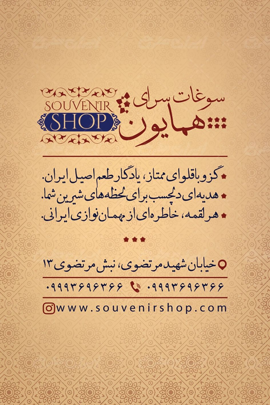 مشخصات فنی طرح کارت ویزیت فروشگاه سوغات