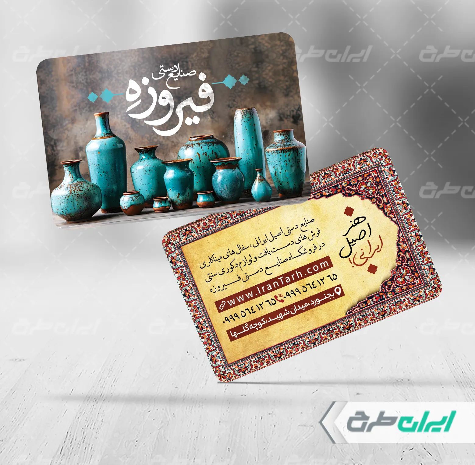 طرح لایه باز کارت ویزیت صنایع دستی ، جهت بازاریابی و تبلیغات این دسته از فروشگاه ها توسط تیم طراحان ایران طرح طراحی و در دسترس کاربران سایت قرار گرفته است.