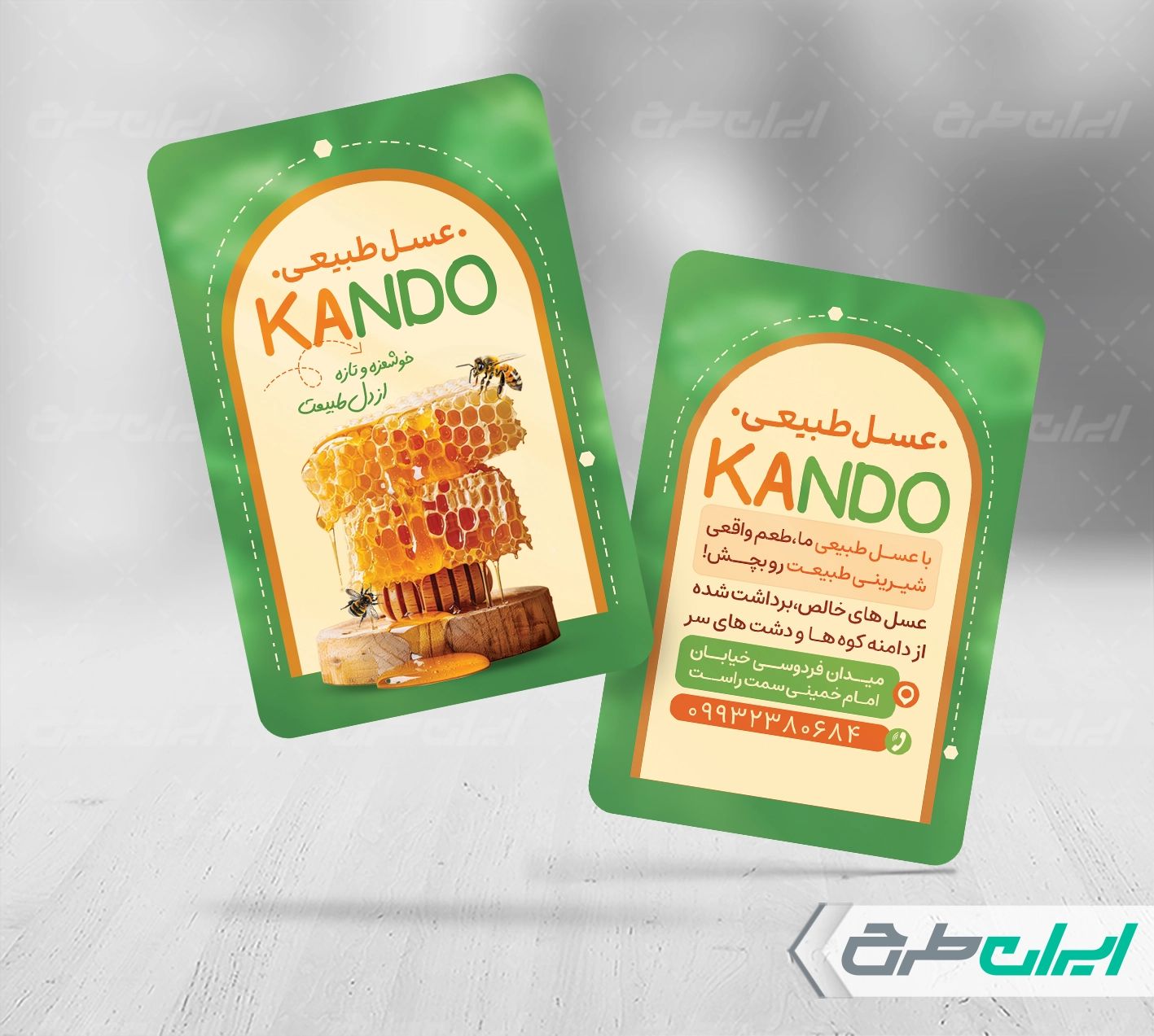 نکات طرح کارت ویزیت لایه باز فروشگاه عسل