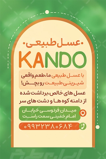 در طراحی کارت ویزیت برای عسلفروشیها، استفاده از تصاویری جذاب از محصولات عسل طبیعی و همچنین رنگهای طبیعی و ملایم میتواند تأثیر زیادی در جذب مشتری داشته باشد. طراحی کارت ویزیت باید بهگونهای باشد که حس طبیعی و اصالت محصولات را منتقل کند. اطلاعات تماس، آدرس فروشگاه، شماره تلفن و حتی وبسایت فروشگاه باید بهوضوح و با فونتهای خوانا درج شود تا مشتریان بتوانند به راحتی با فروشگاه تماس بگیرند.
