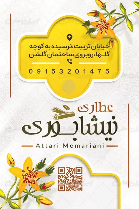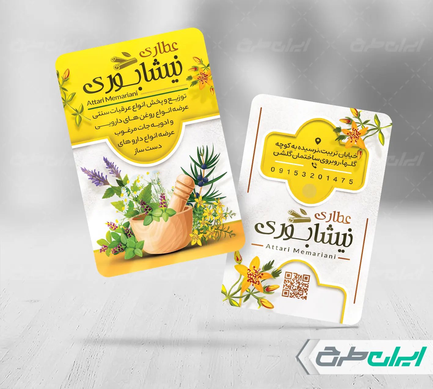 کارت ویزیت لایه باز عطاری توسط تیم ایران طرح جهت تبلیغات و بازاریابی این فروشگاه ها طراحی و در دسترس کاربران سایت قرار گرفته است.