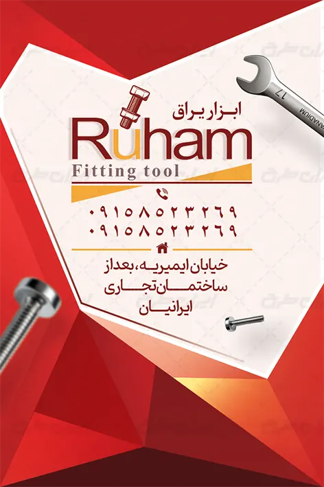 - طراحی ساده و کاربردی طرح کارت ویزیت ابزار یراق
