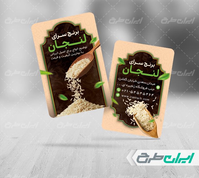 طرح کارت ویزیت فروشگاه برنج، جهت بازاریابی و تبلیغات این دسته از فروشگاه ها توسط تیم طراحان ایران طرح طراحی و در دسترس کاربران سایت قرار گرفته است.