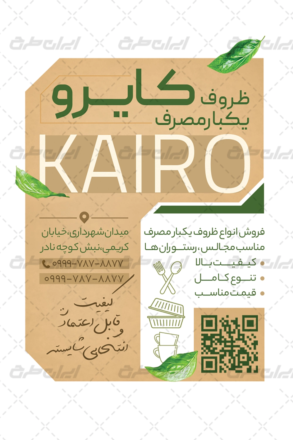 طرح کارت ویزیت ظروف یکبار مصرف شامل: