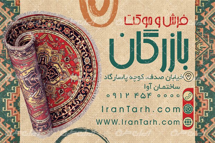 کارت ویزیت فروشگاه فرش ،جهت تبلیغات این دسته از فروشگاه توسط تیم ایران طرح طراحی شده است.