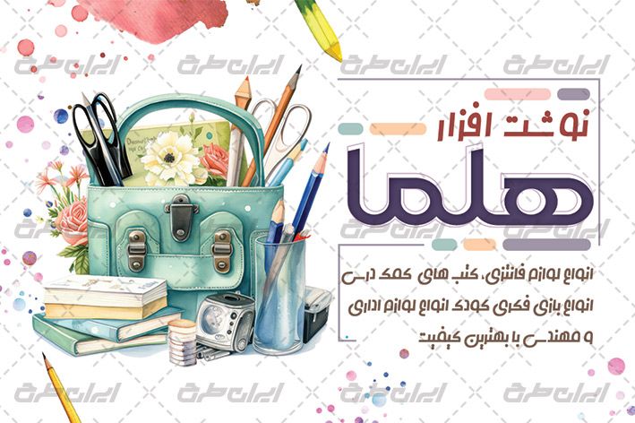 طرح کارت ویزیت فروشگاه لوازم تحریر، توسط تیم ایران طرح جهت تبلیغات و بازاریابی این دسته از فروشگاه ها طراحی شده است.