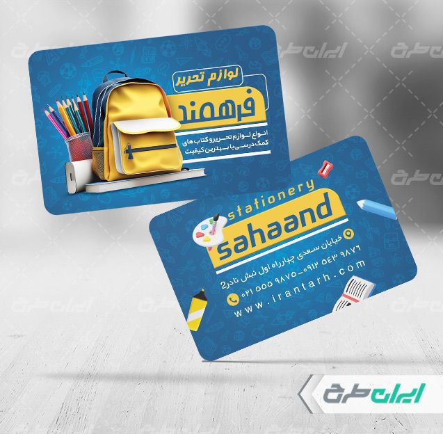 طرح کارت ویزیت فروشگاه لوازم تحریر، توسط تیم ایران طرح جهت تبلیغات و بازاریابی این دسته از فروشگاه ها طراحی شده است.