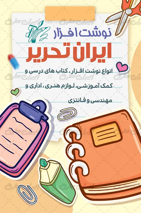طرح کارت ویزیت فروشگاه لوازم تحریر، توسط تیم ایران طرح جهت تبلیغات و بازاریابی این دسته از فروشگاه ها طراحی شده است.