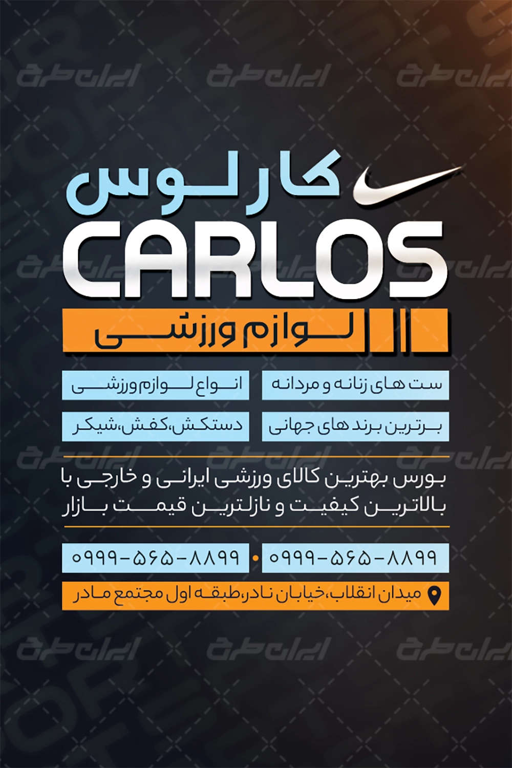 ایران طرح کارت ویزیت فروشگاه لوازم ورزشی را جهت تبلیغات و بازاریابی این فروشگاه ها، طراحی و در دسترس کاربران سایت قرار داده است.