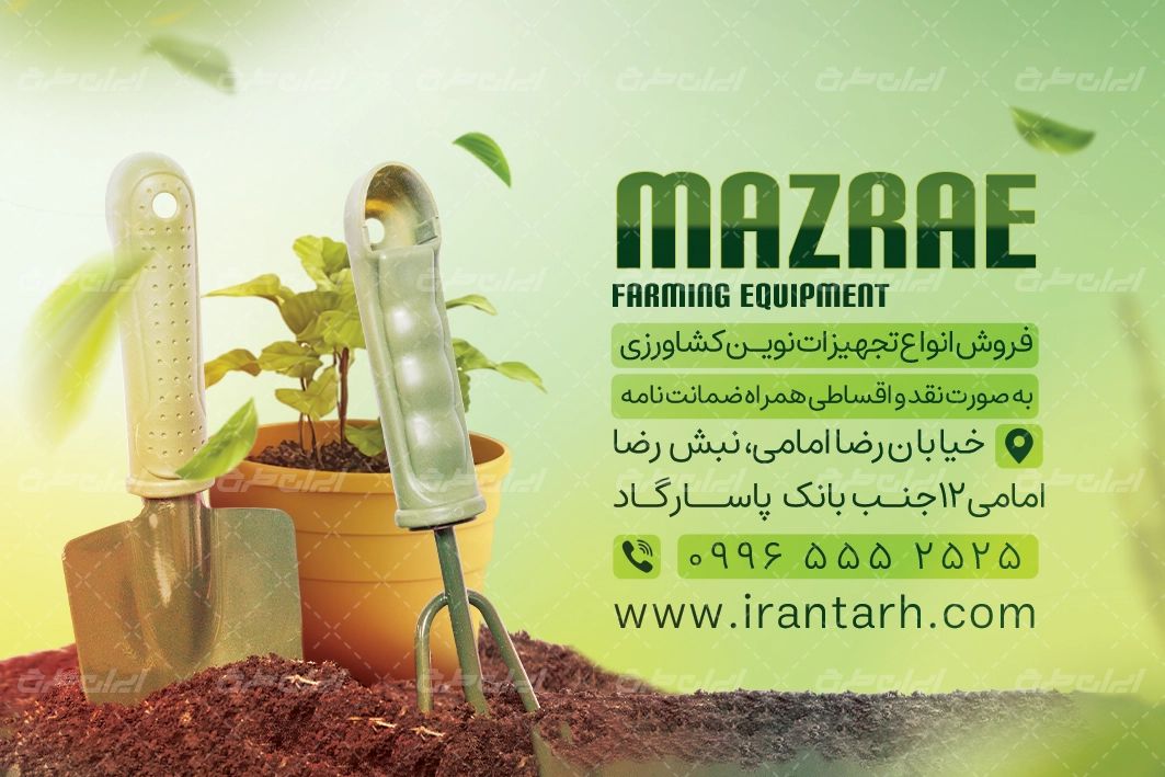 طرح کارت ویزیت ادوات کشاورزی شامل:
