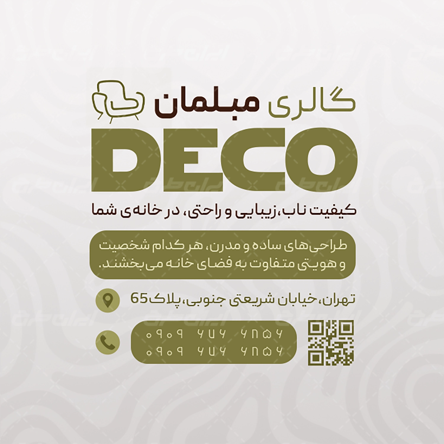 طرح کارت ویزیت فروشگاه مبل شامل: