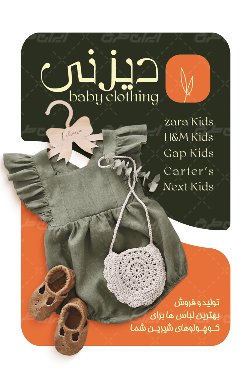 عکس با کیفیت مدل کودک، عکس کودک، لیبل های ساده و رنگی، شیپ ها و المانهای کاربردی می باشد که توسط طراحان ایران طرح در نرم افزار فتوشاپ به صورت بسیار زیبا و فانتزی طراحی شده است.