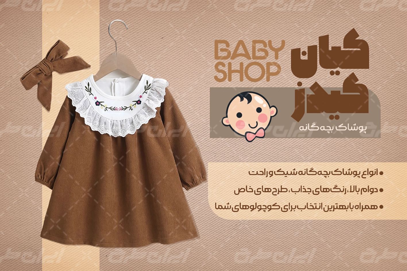 عکس با کیفیت مدل کودک، عکس کودک، لیبل های ساده و رنگی، شیپ ها و المانهای کاربردی می باشد که توسط طراحان ایران طرح در نرم افزار فتوشاپ به صورت بسیار زیبا و فانتزی طراحی شده است.