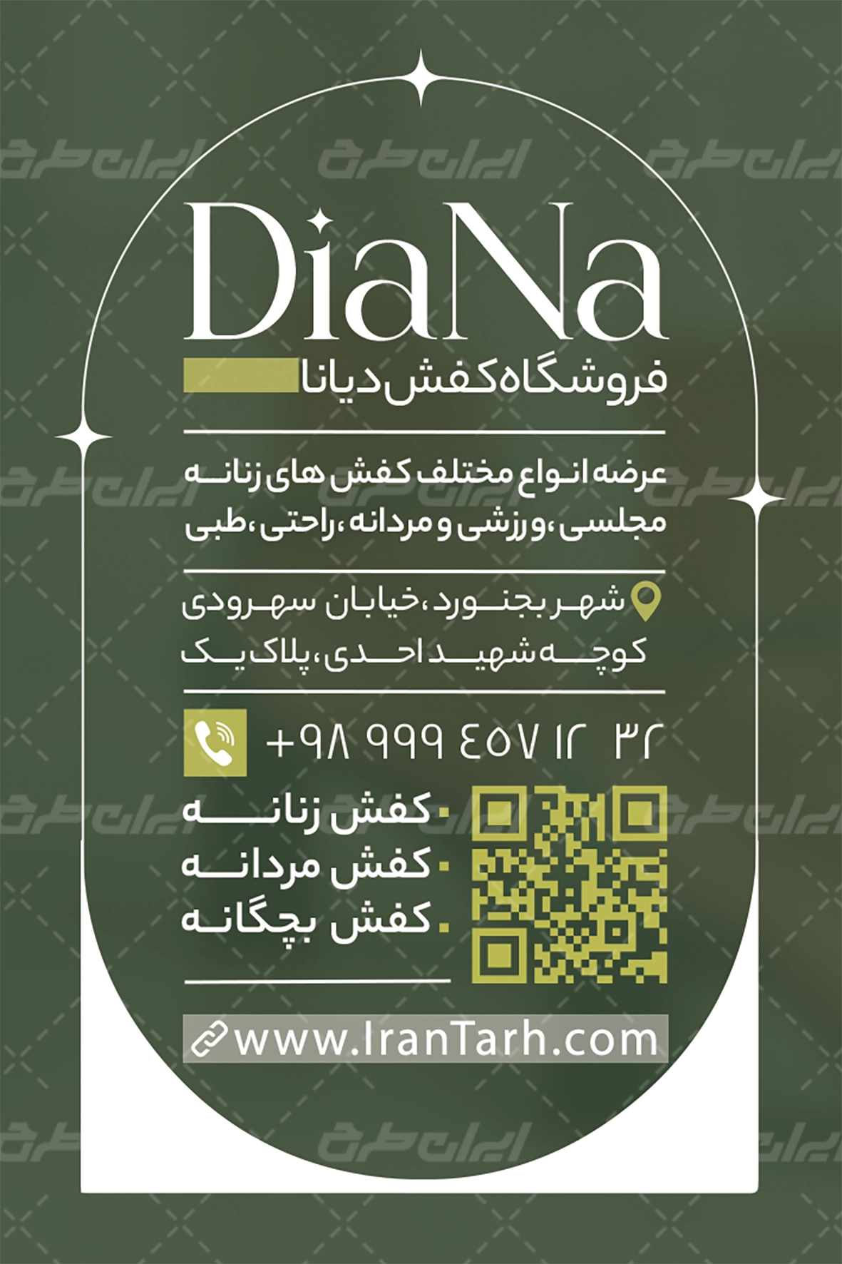 طرح کارت ویزیت گالری کفش، جهت بازاریابی و تبلیغات این فروشگاه ها توسط ایران طرح طراحی و در اختیار کاربران سایت قرار گرفته است.