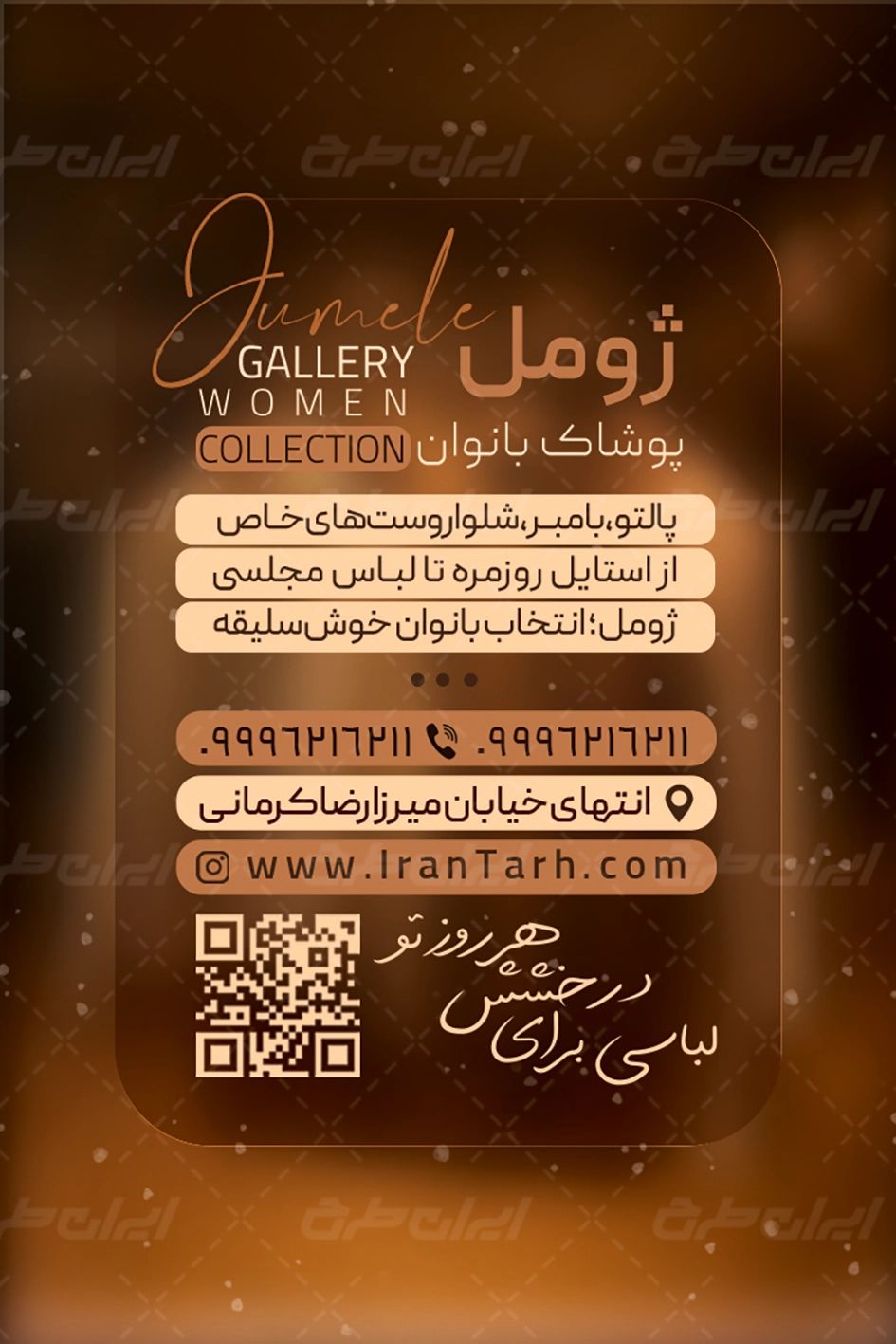 طرح کارت ویزیت پوشاک زنانه شامل: