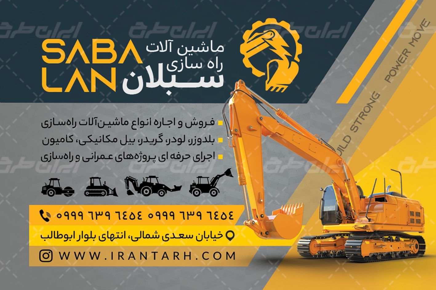 ایران طرح طرح کارت ویزیت ماشین آلات راه سازی را جهت تبلیغات و بازاریابی این دسته از مشاغل، طراحی و در دسترس کاربران سایت قرار داده است.