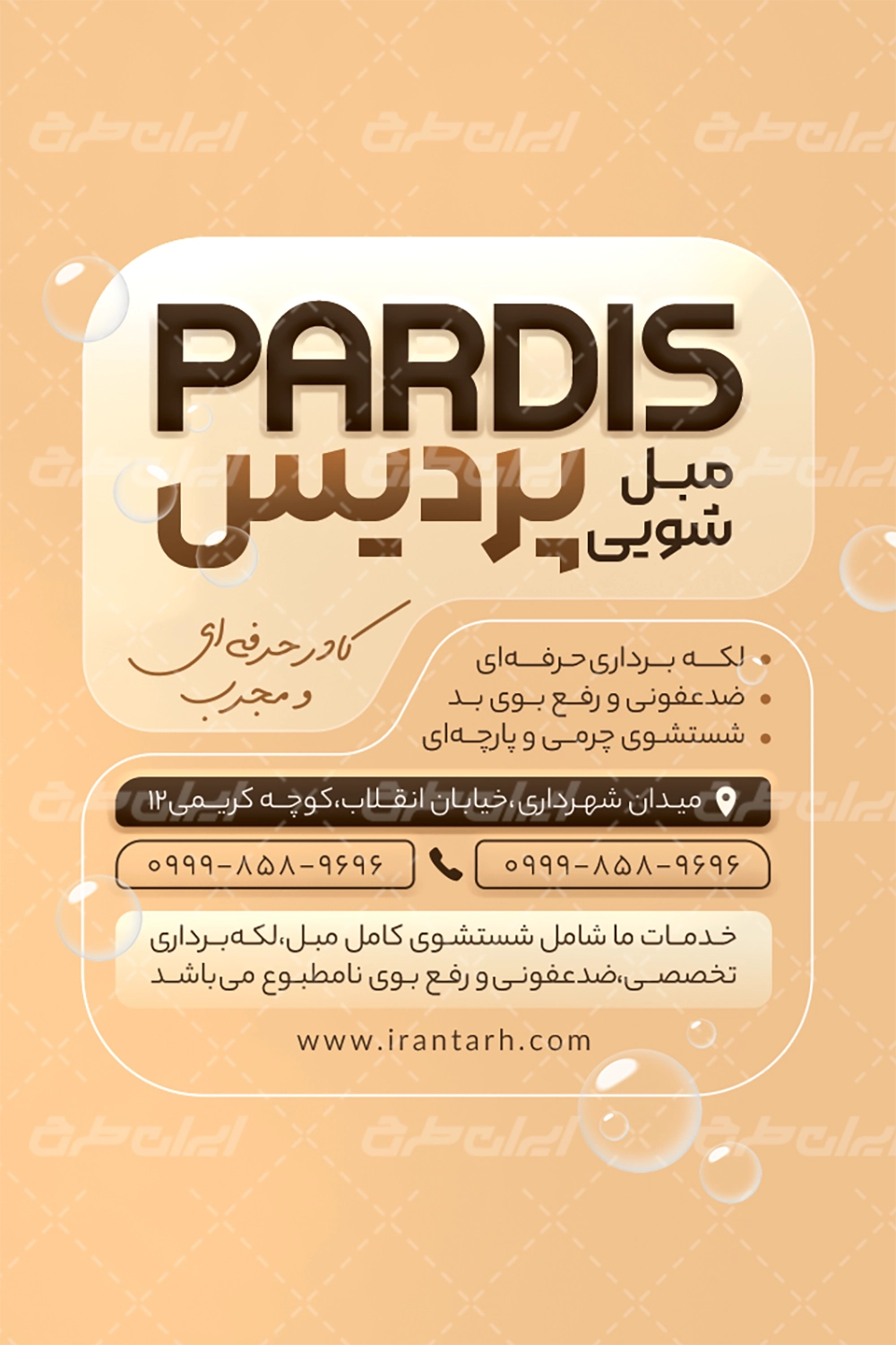 کارت ویزیت لایه باز مبل شویی جهت تبلیغات این دسته از مشاغل توسط تیم ایران طرح طراحی شده است.