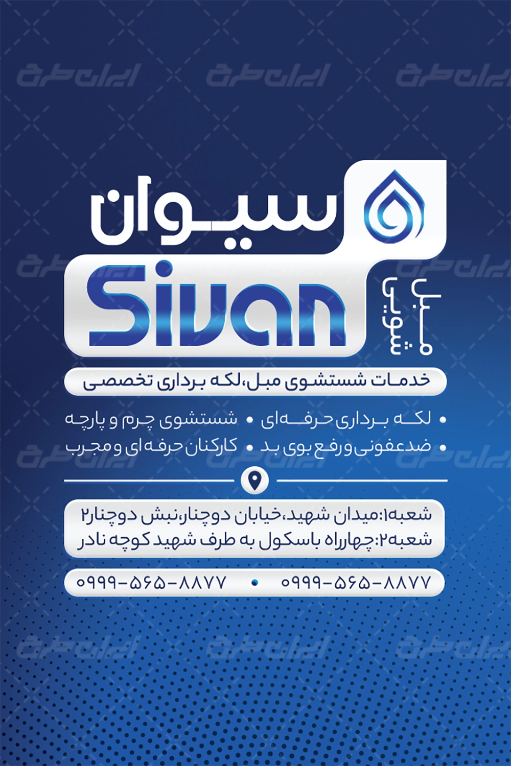 طرح کارت ویزیت مبل شویی شامل:
