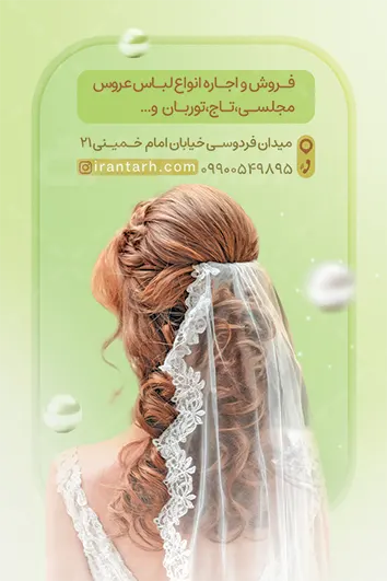 - طراحی شیک و کاربردی کارت ویزیت که مناسب شغل مزون عروس می باشد.