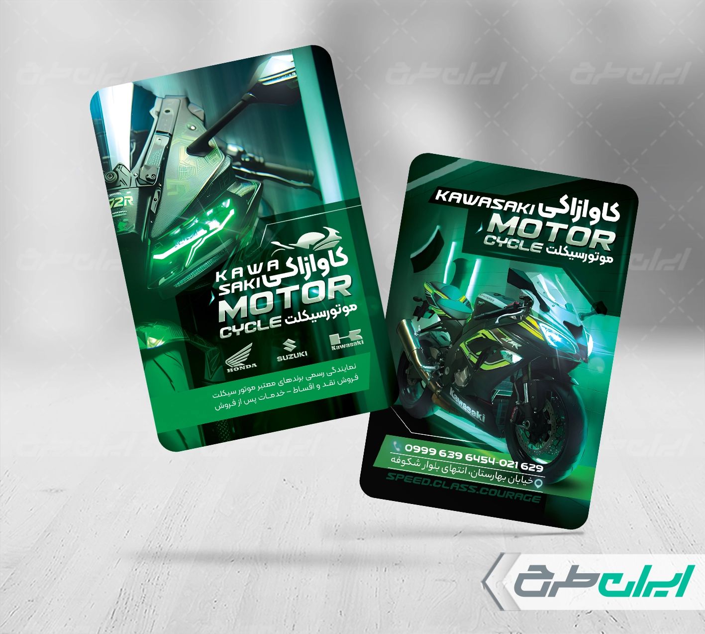 مشخصات فنی طرح لایه باز کارت ویزیت فروشگاه موتور سیکلت