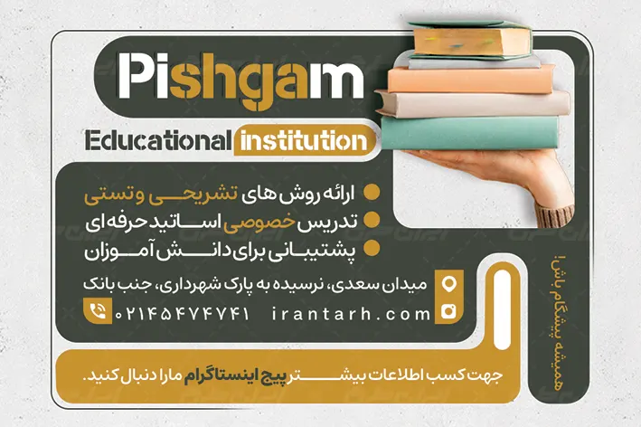 کارت ویزیت موسسه آموزشی و کلاس های تقویتی ،جهت تبلیغات این دسته از آموزشگاه ها توسط تیم ایران طرح طراحی شده است.