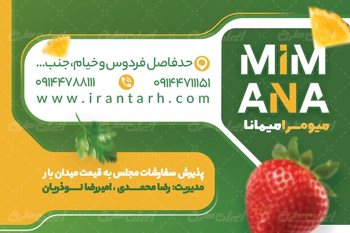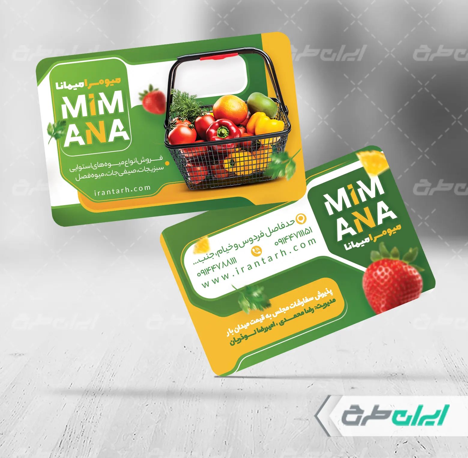 طرح لایه باز کارت ویزیت میوه فروشی، جهت بازاریابی و تبلیغات این دسته از فروشگاه ها توسط تیم طراحان ایران طرح طراحی و در دسترس کاربران سایت قرار گرفته است.