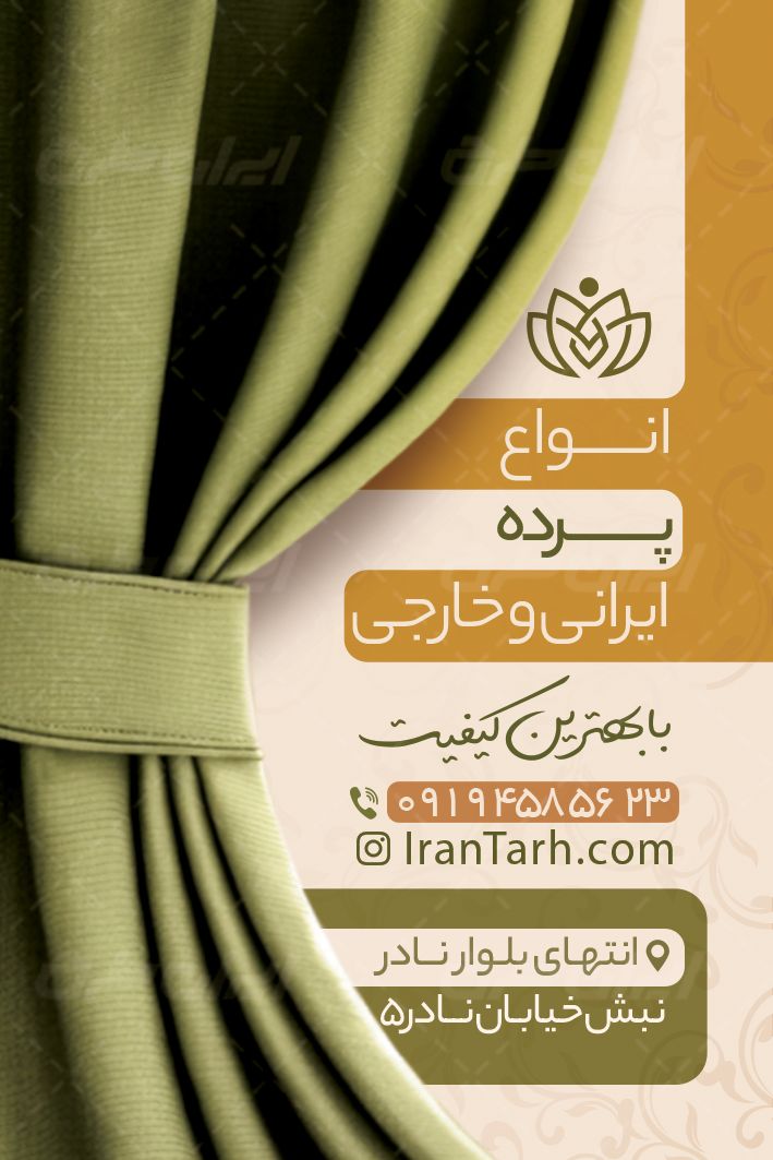 کارت ویزیت پرده فروشی، توسط طراحان ایران طرح جهت بازاریابی فروشگاه ها و یا تبلیغات در سطح شهر توسط کاسبان این شغل طراحی و در دسترس کابران سایت قرار گرفته است.