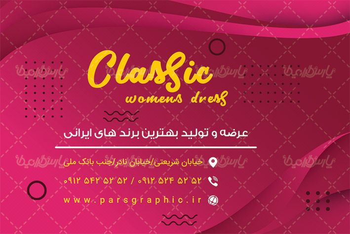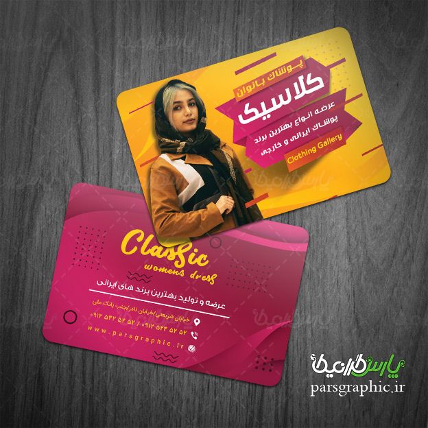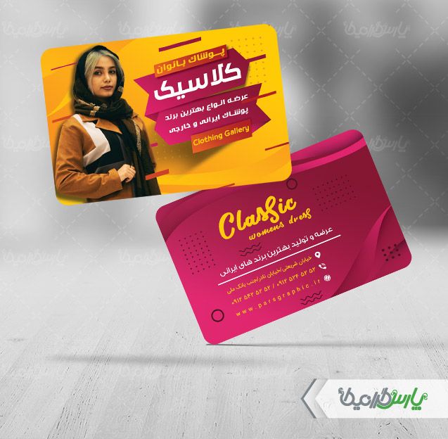 طرح کارت ویزیت psd فروشگاه پوشاک بانوان را از سایت پارس گرافیک دانلود نمایید .
